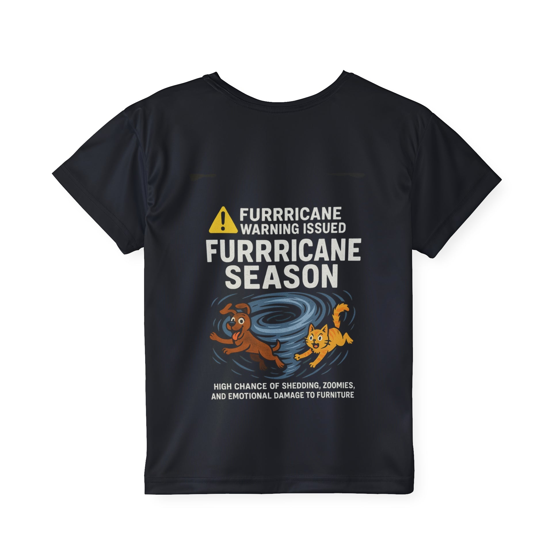 This Funny Furricane Season t-shirt is perfect for kids who love playful and humorous designs. The vibrant colors and hilarious cat and dog flying around a hurricane funnel cloud create a fun and light-hearted vibe. It's ideal for boys and girls who enjoy unique and quirky clothing. Great for casual wear during the summer months or as a fun gift for birthdays or any other celebration.