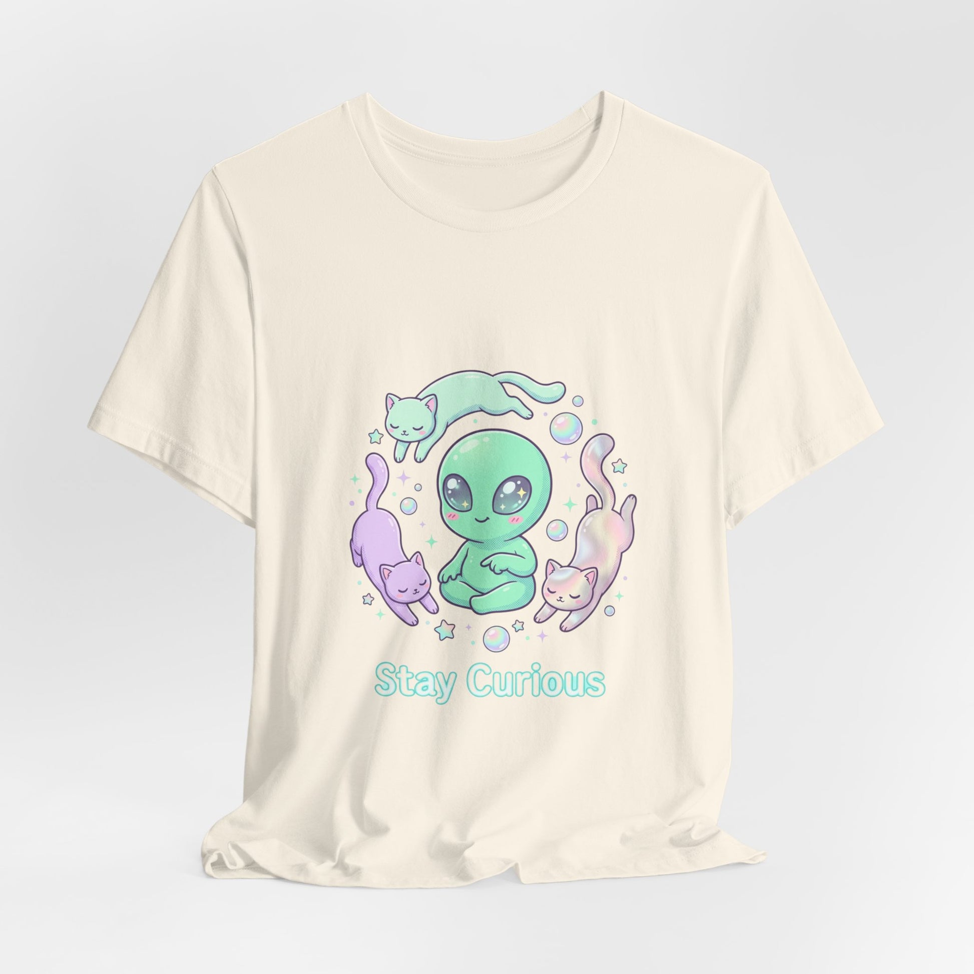 Stay Curious Alien Tee | pastel space design, holographic vibes